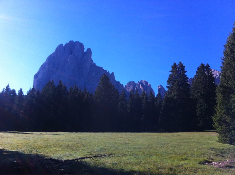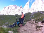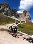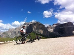 Fazit: Landschaft toll. Stellenweise überlaufen, aber verständlich. Der Langkofel ist exakt so hoch wie unsere Zugspitze. Wir kommen mit unseren Bikes auf 2.435 und damit dem Gipfel recht nahe