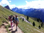 Besonderes Erlebnis: Ich verliere meine Wasserflasche, sie purzelt einen Steilhang hinunter und ich erwäge sie wegen der Steilheit nicht zu bergen. Da springen 2 junge entgegen kommende Italiener den Hang hinunter, einer packt sie, wirft sie dem anderen zu, der reicht sie mir