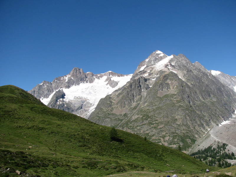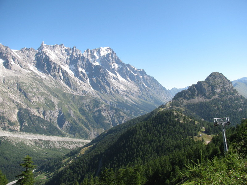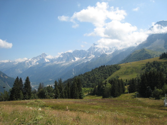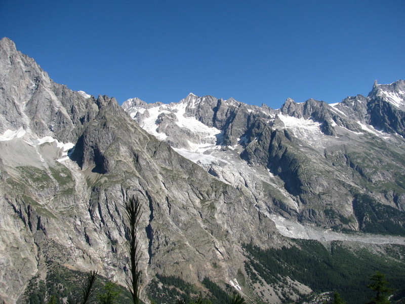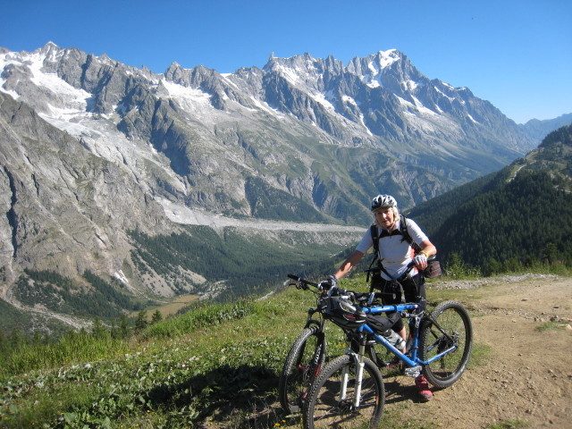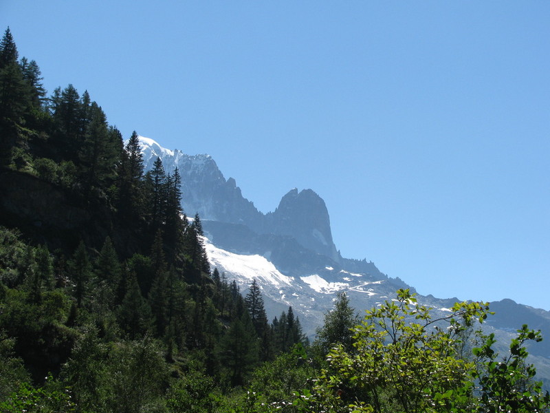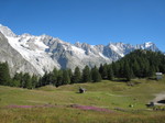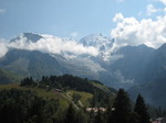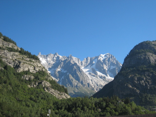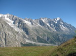 Imposante Bergwelt mit meist präsentem Gipfeln des Mt. Blanc und seinen Gletschern.