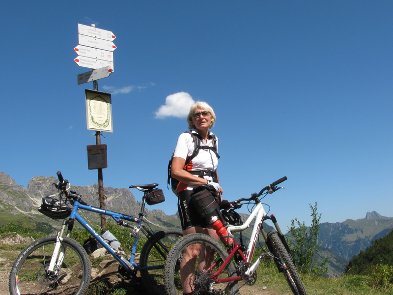 Der Schrofenpass liegt vor der Haustüre von Anderl Heckmair. Von hier aus hat er 1990 seine erste Aipenüberquerung Oberstdorf / Gardasee per Mountainbike gestartet. Er hat damit der Boom der Alpenüberquerung ausgelöst und gilt als deren Erfinder. Wir hatten das Glück mit ihm per Bike Patagonien vom Pazifik bis zum Atlantik durchqueren zu dürfen.